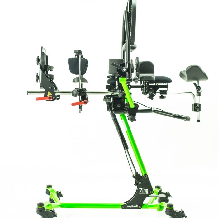 Als Stehtrainer erlaubt der Zing eine absolut waagerechte Rückenlage des Kindes. In einer einzigen fließenden Bewegung kann diese bis zu einer Bauchlage bis zu 20 Grad variiert werden. Dafür müssen keine Veränderungen an den Pelotten, Gurten oder am Therapietisch vorgenommen werden.